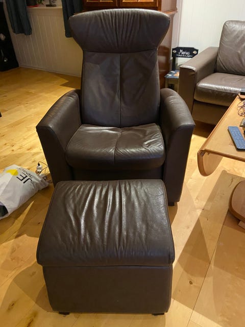 Skinn lenestol med pall