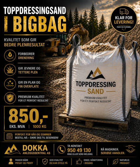 TOPPDRESSINGSAND 1000 kg BigBag – Klar for levering