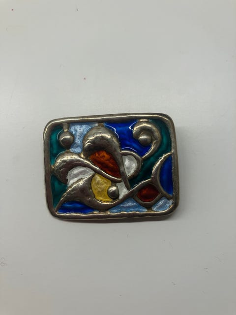 Sølv emalje brosje
