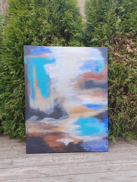 Stort abstrakt akrylmaleri