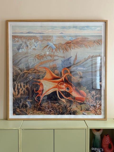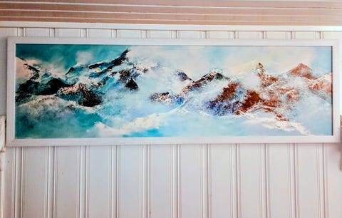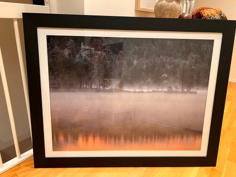 Stort kunsttrykk med eikeramme