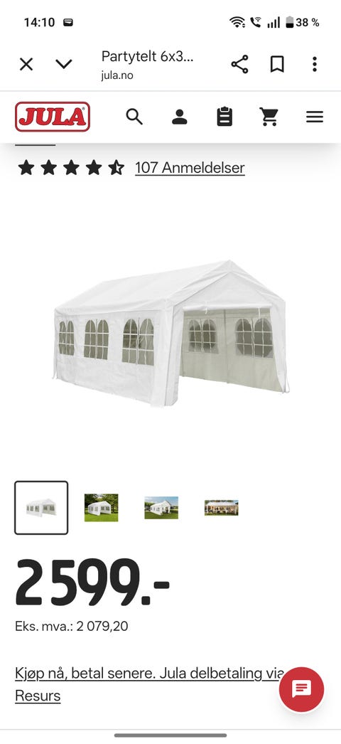 Partytelt 3 x 5 meter leies ut
