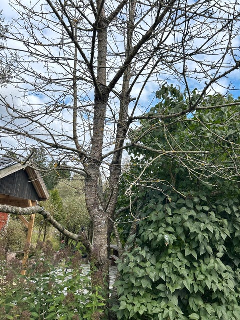 Hagestue i tre.