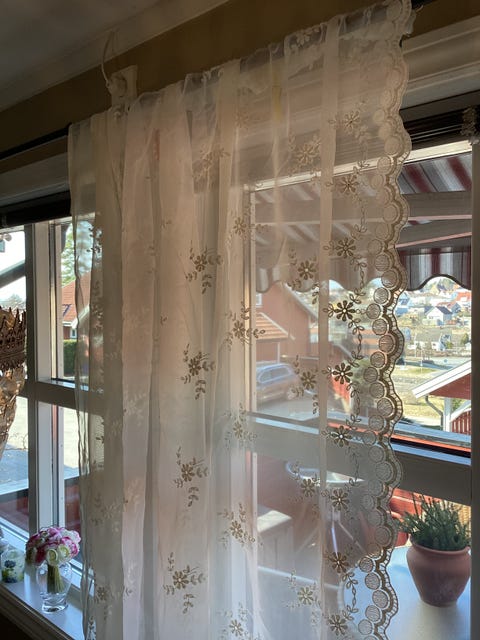 Hvit gardin med blomster