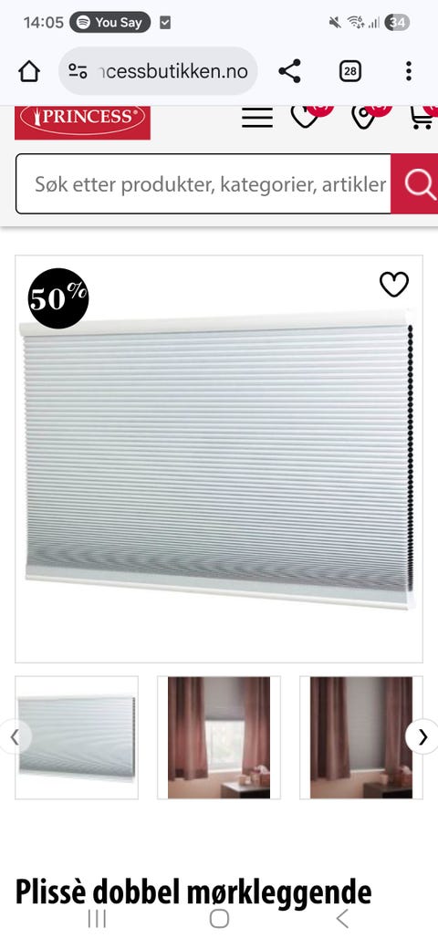 1 stk hvit plissegardin
