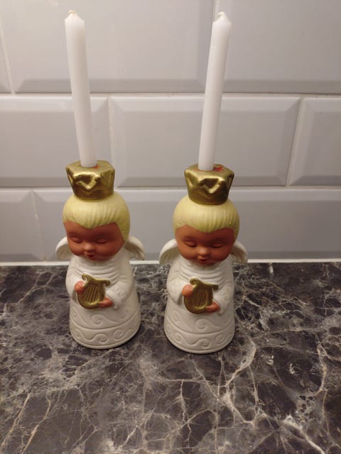 2 antikke lysestaker