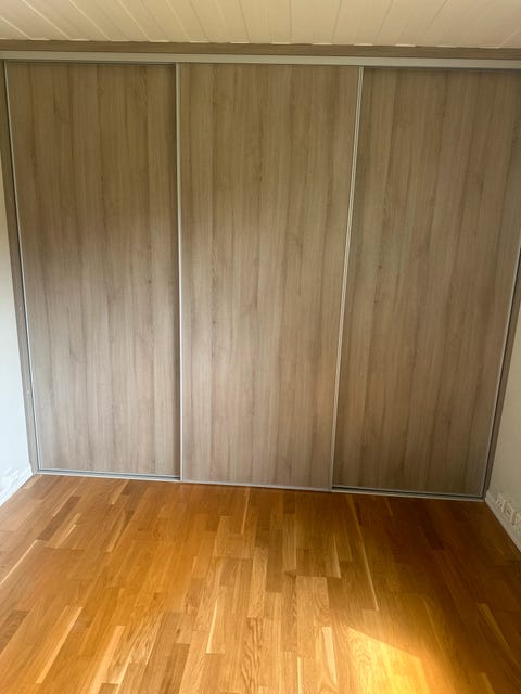 Fin, liten skyvedørsgarderobe