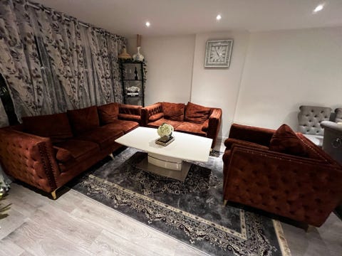 Velour sofa + puff