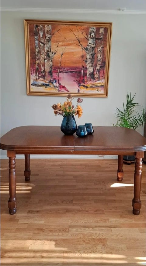 Spisebord i mørkoljet eik
