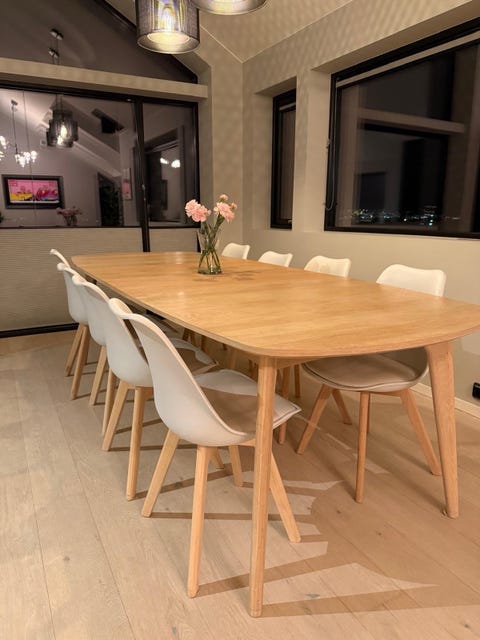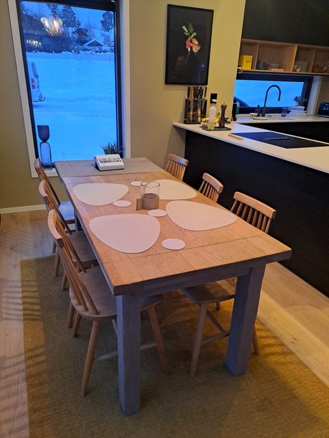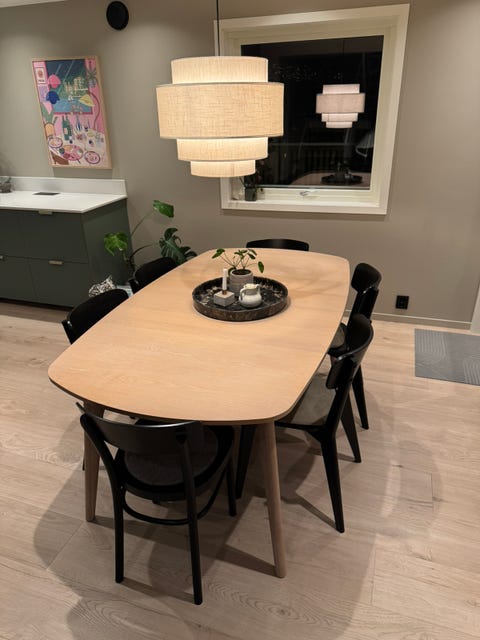 Spisebord av eik og stoler