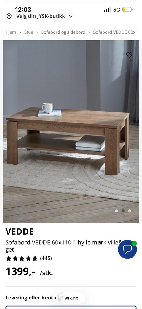 Hjørne stuebord