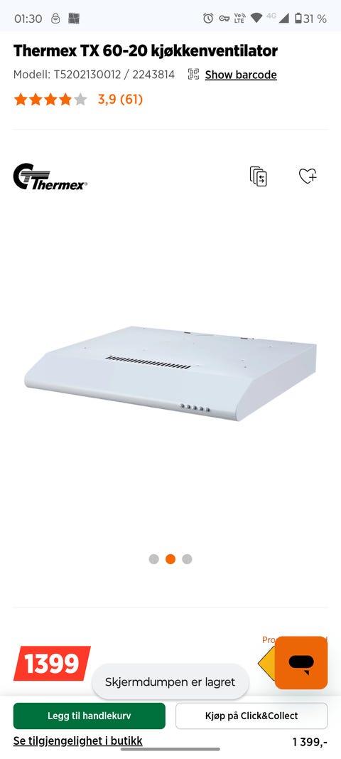 90cm kjøkkenvifte gis bort