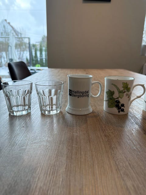 Div kopper og glass gis bort