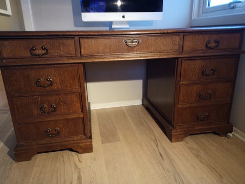 Eike-skrivebord med snurre-stol