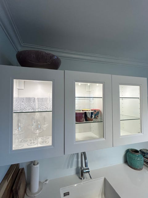 Veggskap, hvit med glasshyller