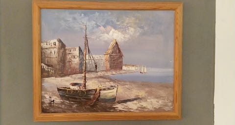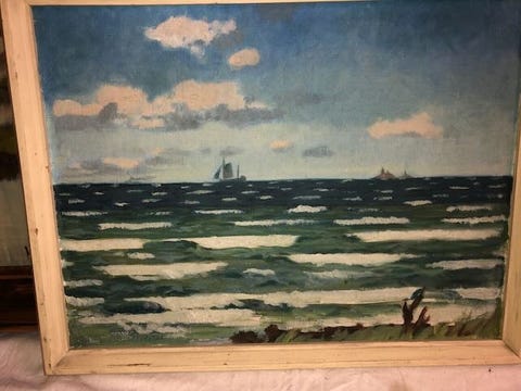 "Dønniger og skibe". Oljemaleri.