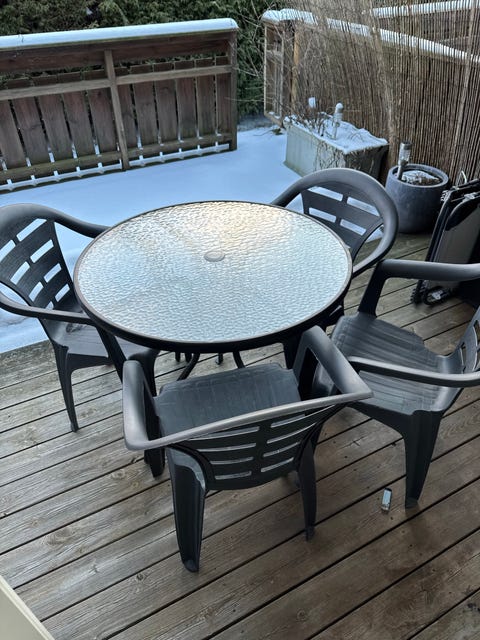 Stort hagebord i plastikk.
