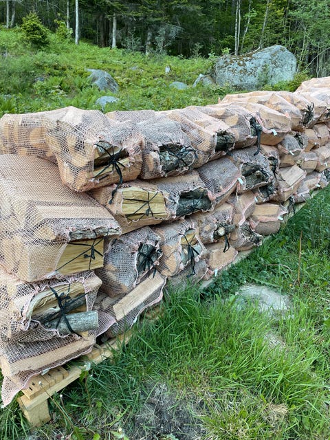 Ved i 60-liters sekker