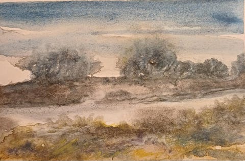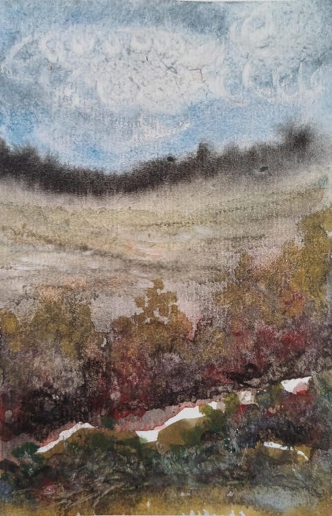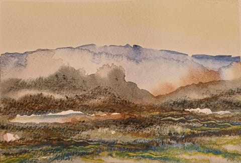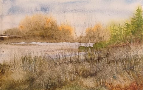 Akvarell "Lyng og myr"