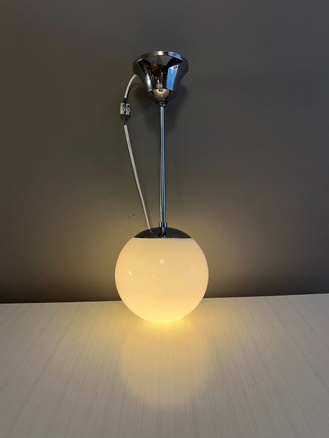 Taklampe i hvitt glass