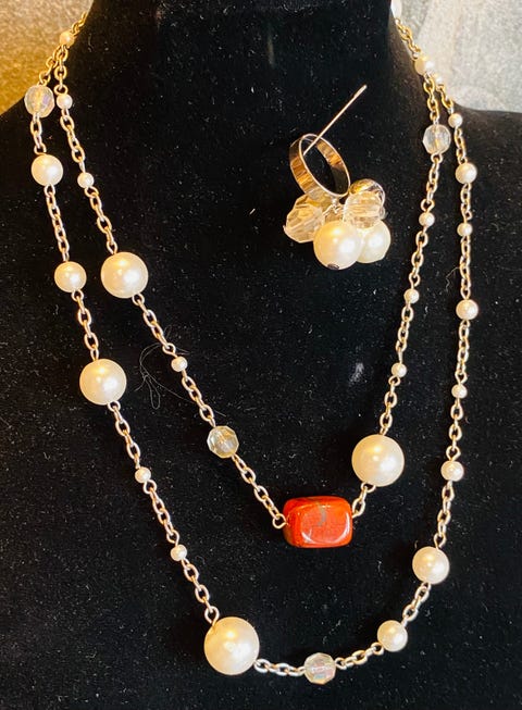 smykke og ring i gull 585.