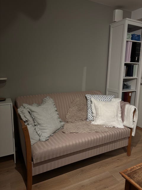 Søkes: Beige/grå trekk sovesofa 2 seter