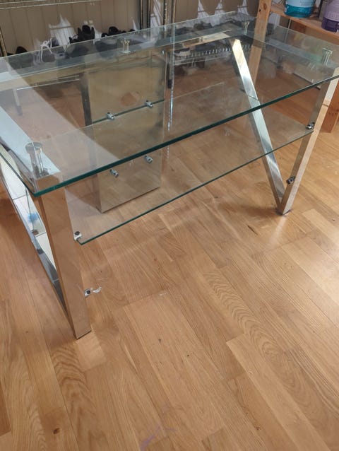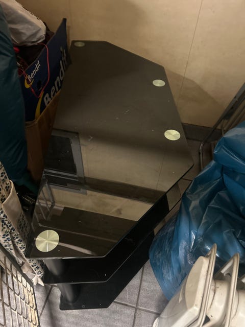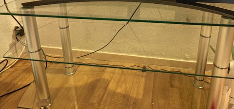 Tvbenk i glass gis bort