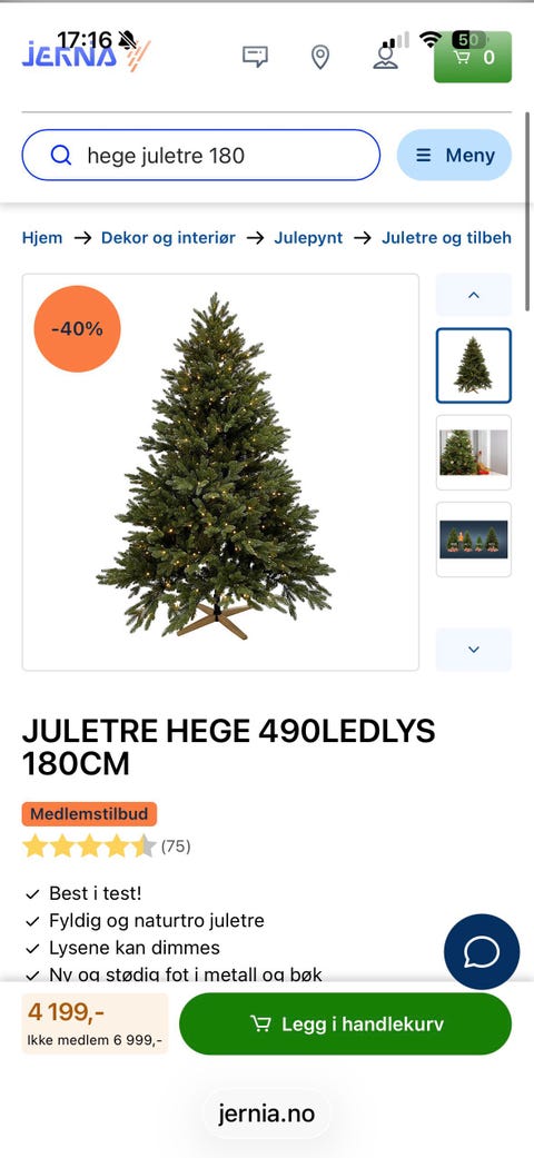 Juletre fra Clas ohlson, 210cm