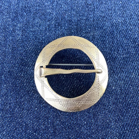 Utsmykket brosje i sølv.