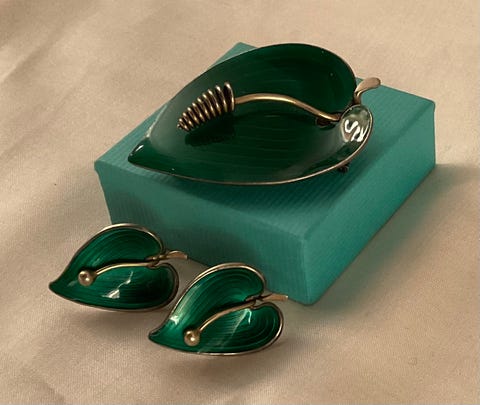 Emaljert brosje i sølv