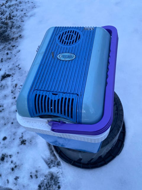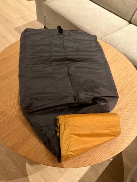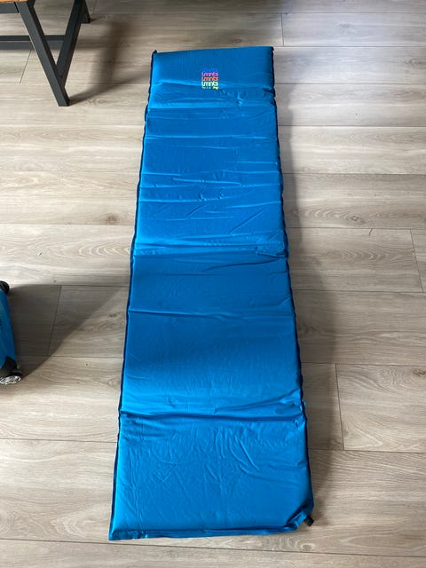 Oppblåsbar campingpute gis bort