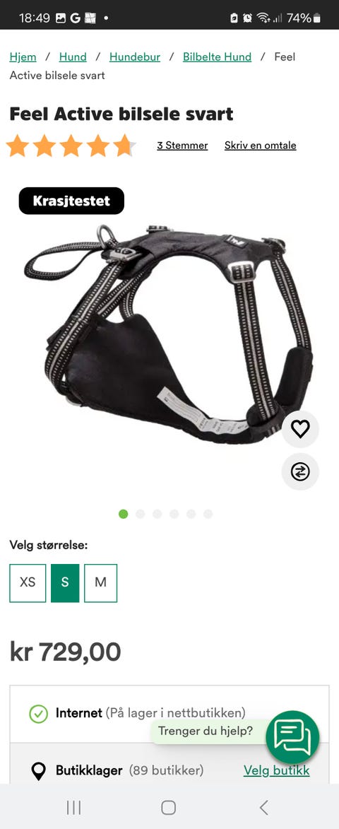 Flytevest til hund i str.S