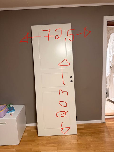 Hvit innerdør 203 cm x 72,5 cm