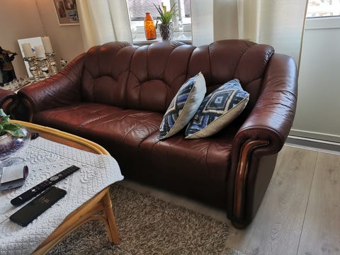 Brun skinnsofa
