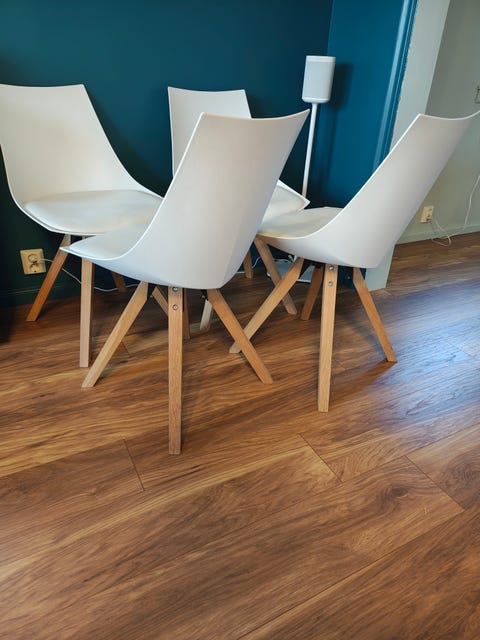 6 stk hvite spisebordstoler