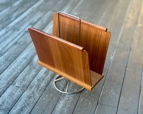Vintage avisstativ / aviskurv i teak