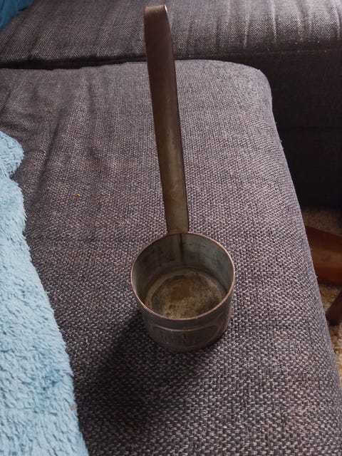 Gamel kobber øse (sil)