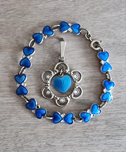 Nydelig emalje dåpsarmbånd og anheng