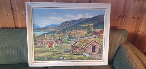 Oljemaleri med ramme, originalt