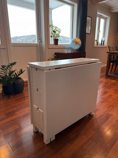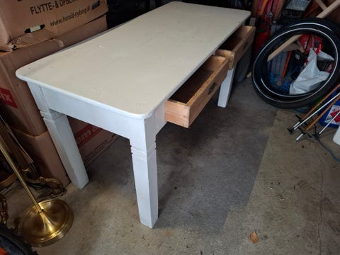 Hvitmalt trebord - m 2 skuffer