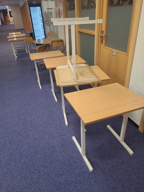 10 gamle skolepulter.