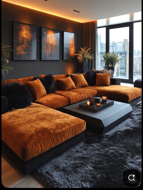 Sofa velour oransje/svart