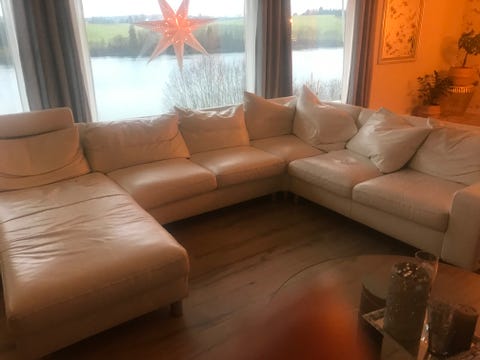 Hvit skinnsofa til salgs