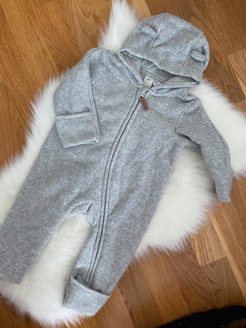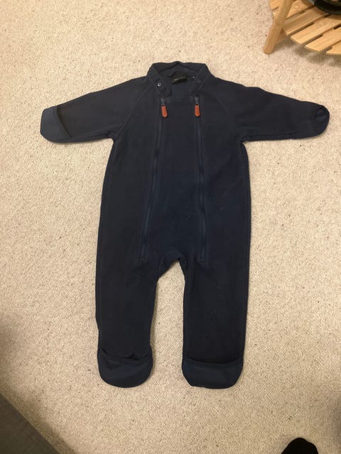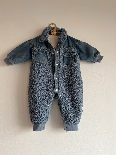 Dongeridrakt foret med fleece / Baby Denim Blue Warm Fleece romper str 6-12 mnd