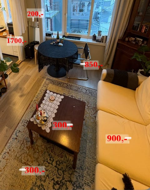 Antikviteter og kunst (6 519)Dyr og utstyr (146)Elektronikk og hvitevarer (680)Foreldre og barn (1 228)Fritid, hobby og underholdning (700)Hage, oppussing og hus (1 319)Klær, kosmetikk og tilbehør (257)Møbler og interiør (539 462)Næringsvirksomhet (888)Sport og friluftsliv (37)Utstyr til bil, båt og MC (94)