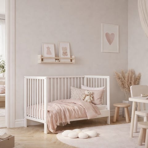Barneseng og nattbord .