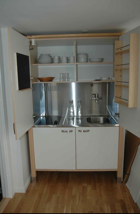 Praktisk hybelkjøkken i skap