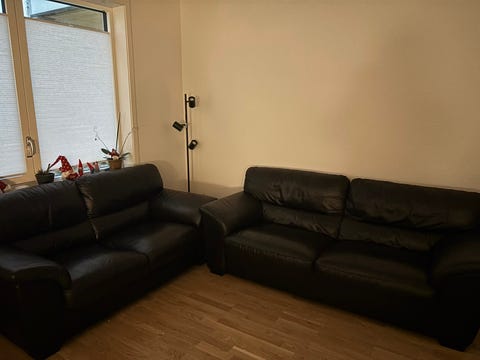 Svart skinnsofa