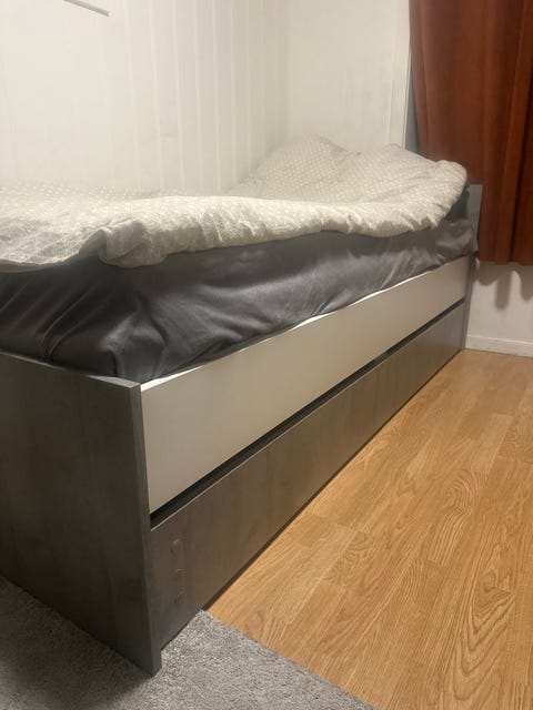 Seng med oppbevaringsrom.