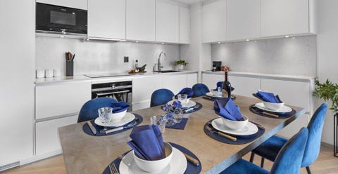 Spisebord med ileggsplater